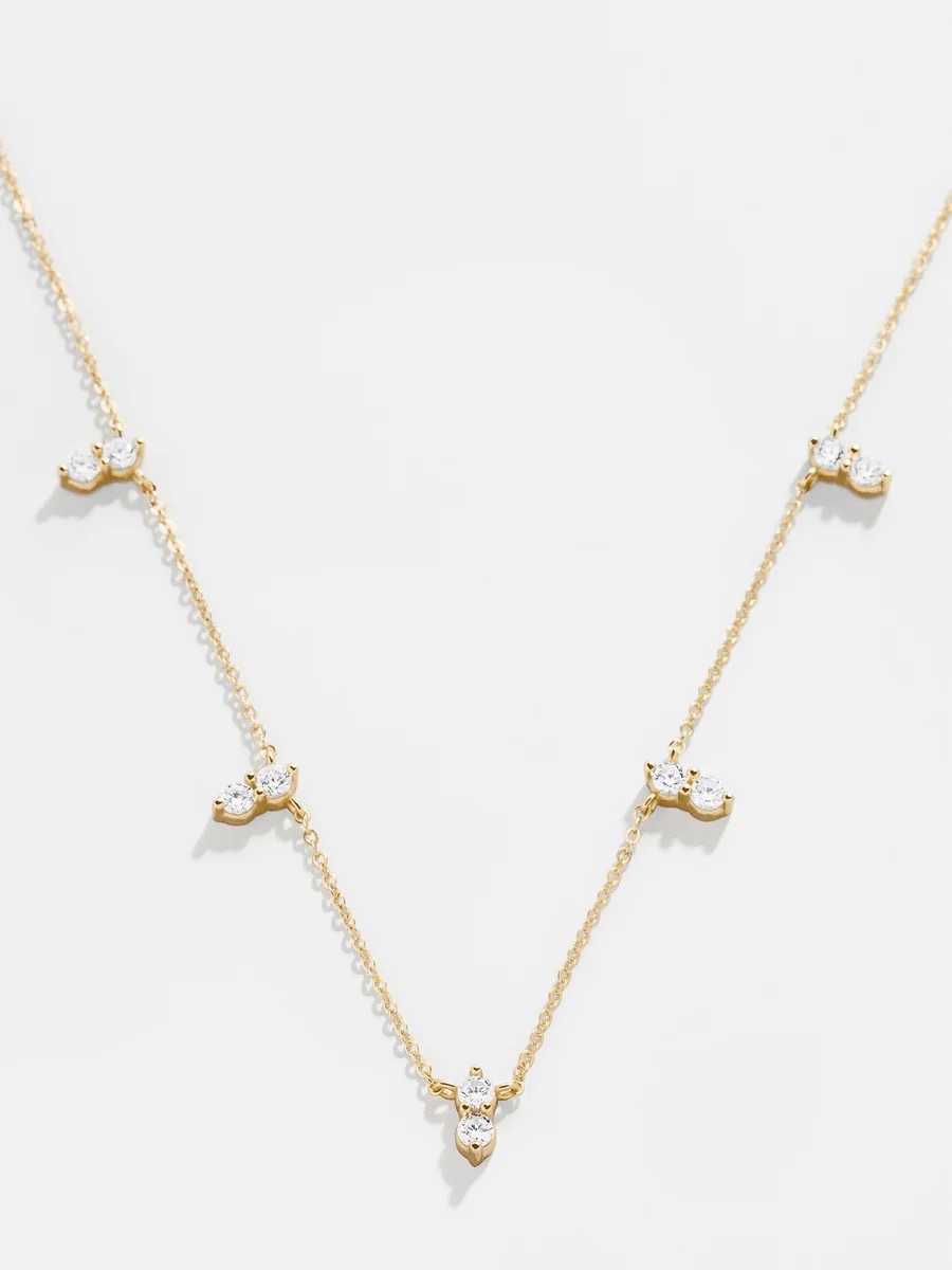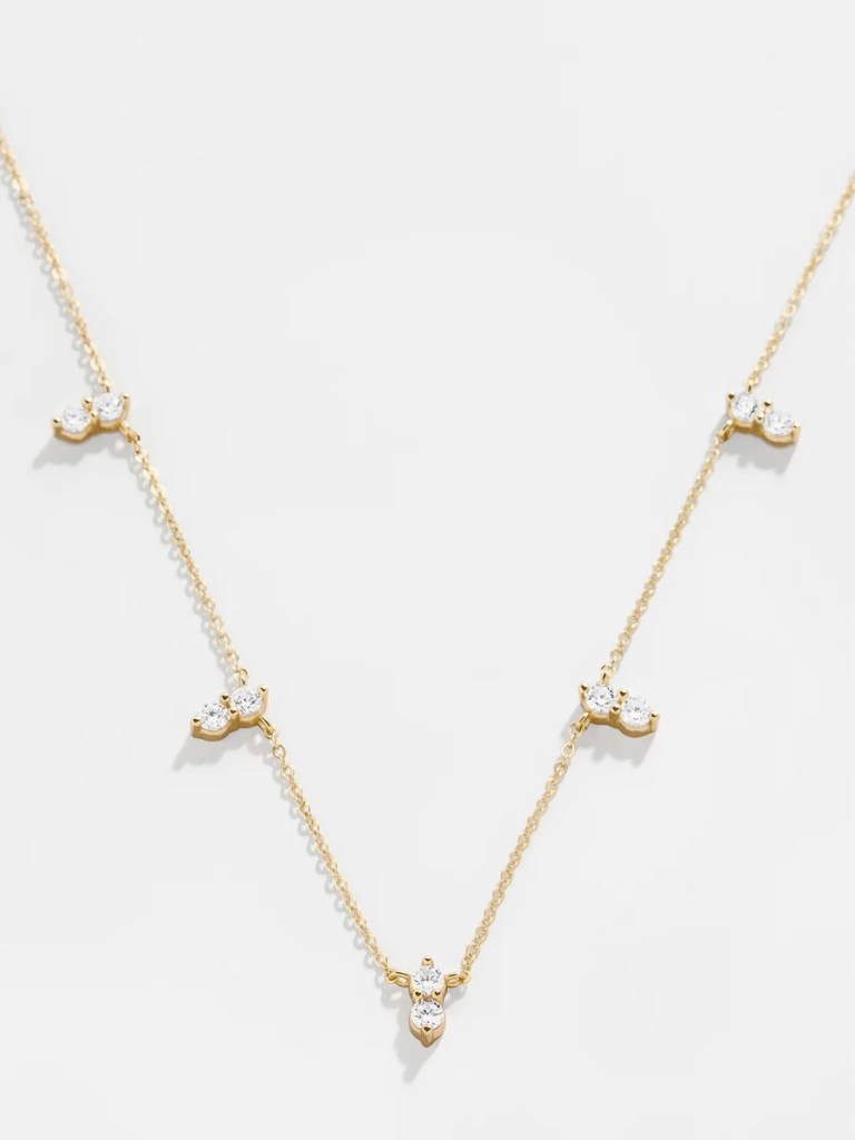 Baublebar is a great source for relatively inexpensive trendy costume jewellery. They’ve branched out into offering sterling and gold plated sterling pieces (vermeil), like this necklace accented with delicate cubic zirconia stones.