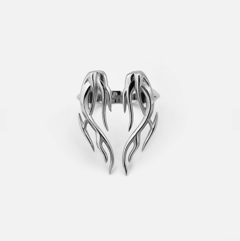 This flame ring is made of stainless steel, so no need to be precious with it. There are matching earrings.