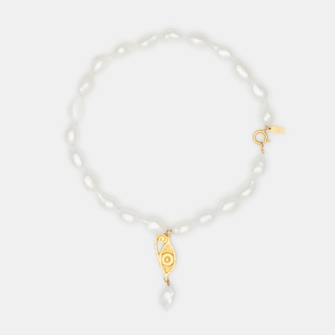 The site notes,” Inspired by the powerful female goddesses from ancient Egypt, the Ayla is forever looking out for you. Made of Genuine baroque pearls. Acting as a third eye, this necklace is adorned with a tear of joy made from a naturally shaped freshwater pearl.“