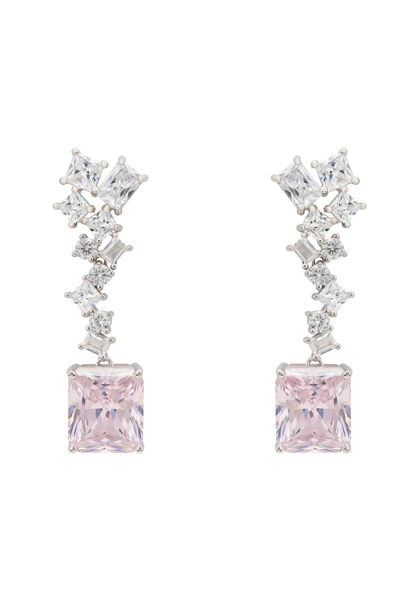 If you are looking for affordable special occasion jewelry, Latelita has a wide range of options. These earrings are made with pink morganite set into sterling silver, accented with simulated diamonds. (They don’t indicate what material these stimulants are.)