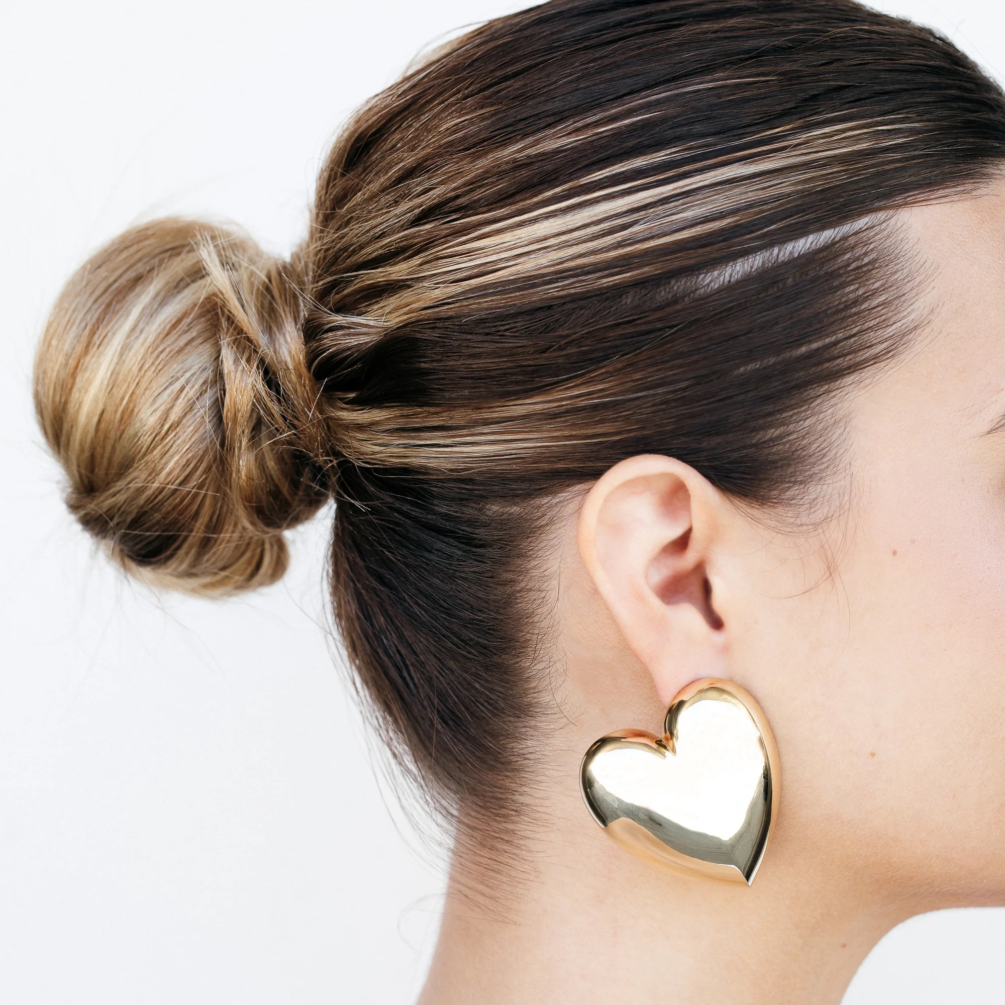 These large hearts, with a post back, are made of gold plated brass (also available in silver colour), and sell for USD$544.