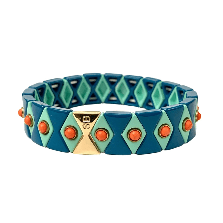 Sometimes you just want to wear something colourful and fun, and these bracelets by Serabondy available in a few colours, give you lots of options. Made of enameled stretch tiles, wear one alone or a few at a time.