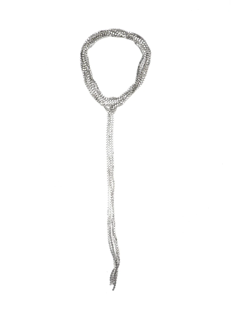 Brass seems to be the metal of choice for costume jewellery designers. This unisex necklace by Sita Nevado uses multiple fine brass chains strung from a choker collar.