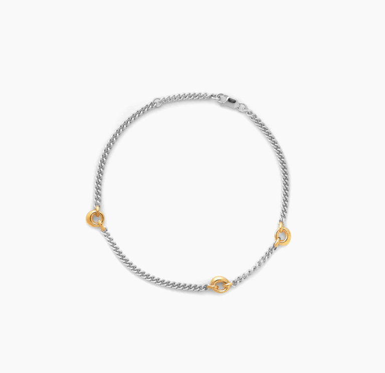 This dainty bracelet by Otiumberg is made with a sterling silver chain with vermeil accents.