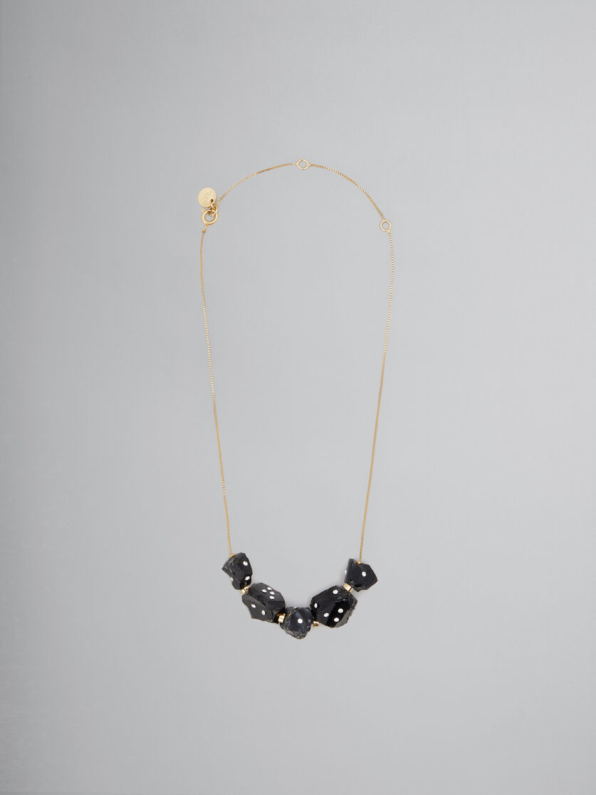 This necklace from Marni is effortlessly cool. It features irregularly shaped obsidian stones, each inset with rhinestones, and strung on a brass chain.