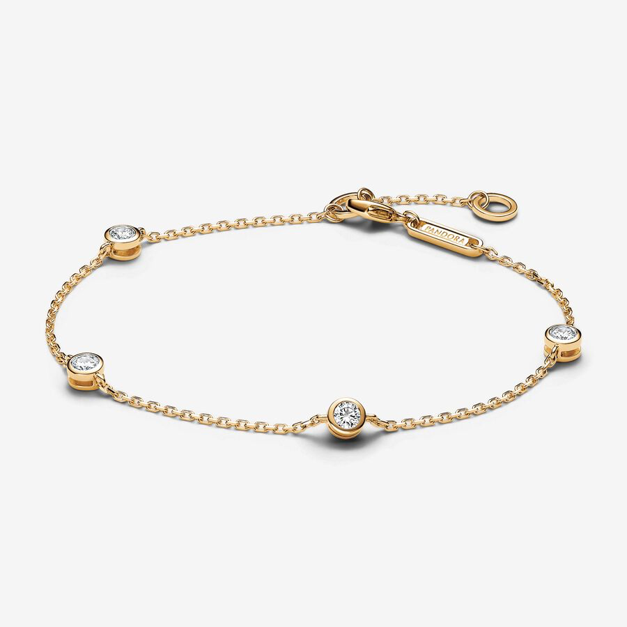 Pandora has done some nice lab diamond pieces at a decent price. This bracelet is 14k yellow gold and is set with .40 carats of bezel set diamonds, for USD$900. By comparison, a Tiffany Elsa Peretti Diamonds by the Yard bracelet in 18k yellow gold with the same diamond carat weight is $4,3000. No one is going to see the Tiffany (or Pandora) hallmark when the jewelry is on your wrist and the bezels look more substantial and flatter on the Pandora, preventing the culet of the diamond from digging into your skin or flipping over. I know which one I’d choose…