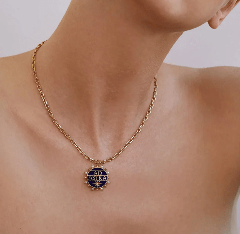 The Latin phrase ad astra means to the stars, and you can embody the sentiment with this necklace from Sauer.