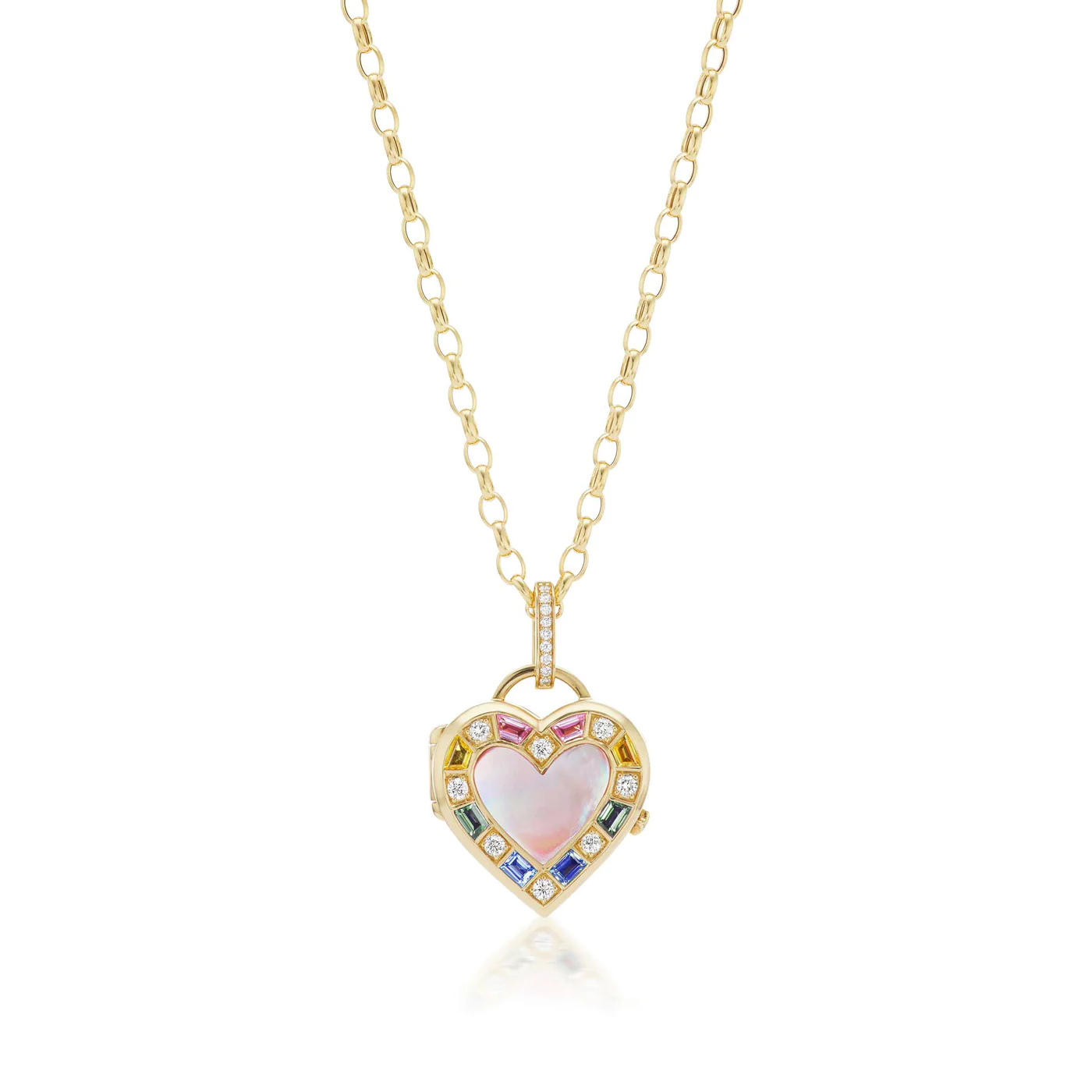 Give me all the lockets (not really kidding)…. This one by Sorellina is made of 18k yellow gold embellished with sapphires, diamonds and a large heart shaped piece of mother of pearl.