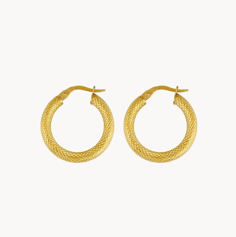 I think you would enjoy these hoops from Roxanne First even if you aren’t a snake lover. The texture on the 9k earrings is reminiscent of a serpent (and the gold wire closure kind of echoes a snake’s tongue) but … that’s it. No eyes, no real tail, nothing exactly snake like – so you’re safe.