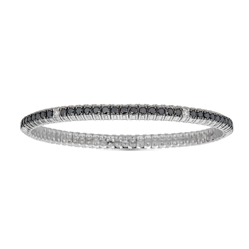 Having lost one expensive bracelet too many due to defective clasps, I am all for a stretch bracelet. My heart belongs to Fope, which uses gold springs. I am not sure what mechanism is being used in these bracelets by Zydo Italy. Their description notes, “This charming 18kt white gold stretch bracelet features 3.45cts of beautiful black and white diamonds, in a tasteful and classic look. The expanding stretching action makes this bracelet easy and comfortable to slip on and off, while its outstanding manufacturing ensures that the springs are both sturdy and durable.” So springs, but they may be base metal.