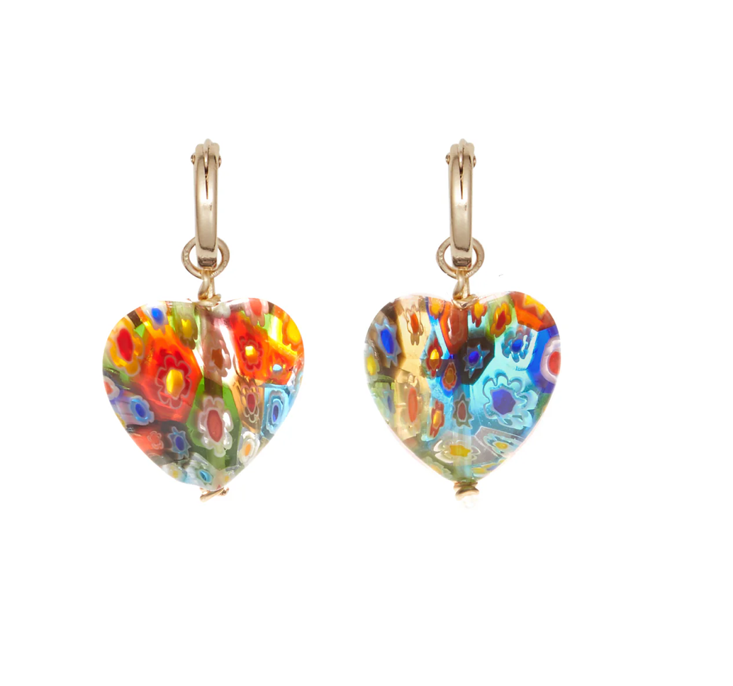These cheerful earrings by Brinker + Eliza come in three different colour options. They feature millefiori glass hung from gold filled posts.