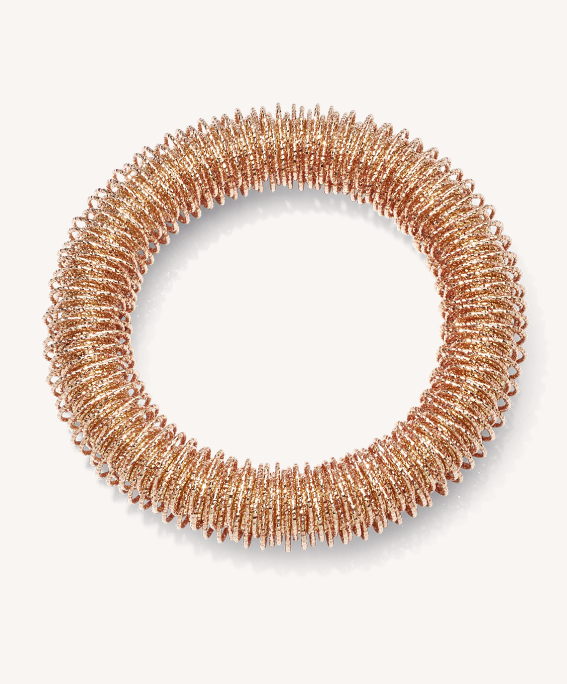 This line of bracelets from Carolina Bucci seems very similar to the expandable/stretchy gold bracelets from Fope. Both seem to use gold springs inside to give the pieces flex.