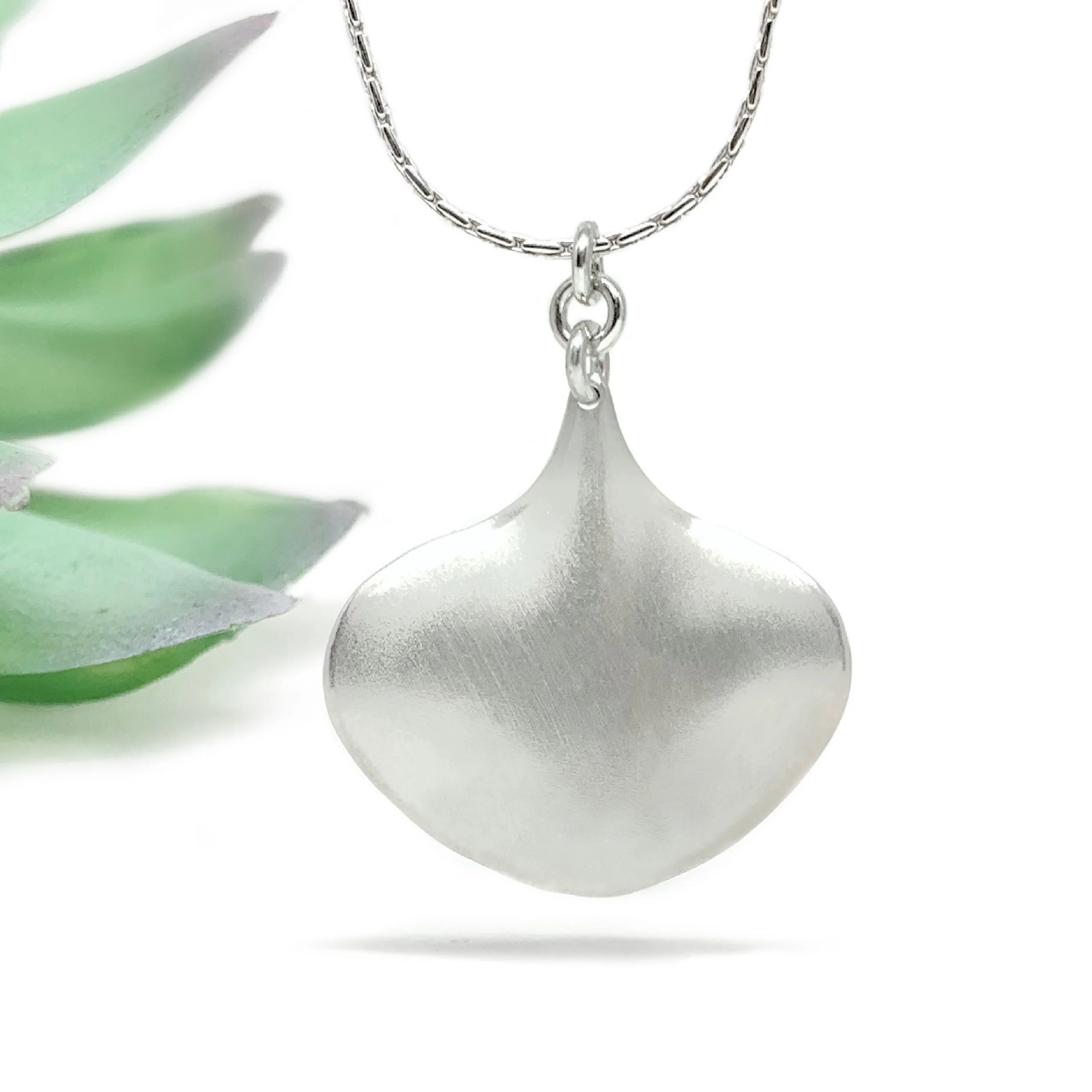 The gingko is a symbol of longevity and rejuvenation. Here, designed by Toronto firm Matsu Jewellery the form is used as a pendant rendered in sterling silver on an intricate chain.