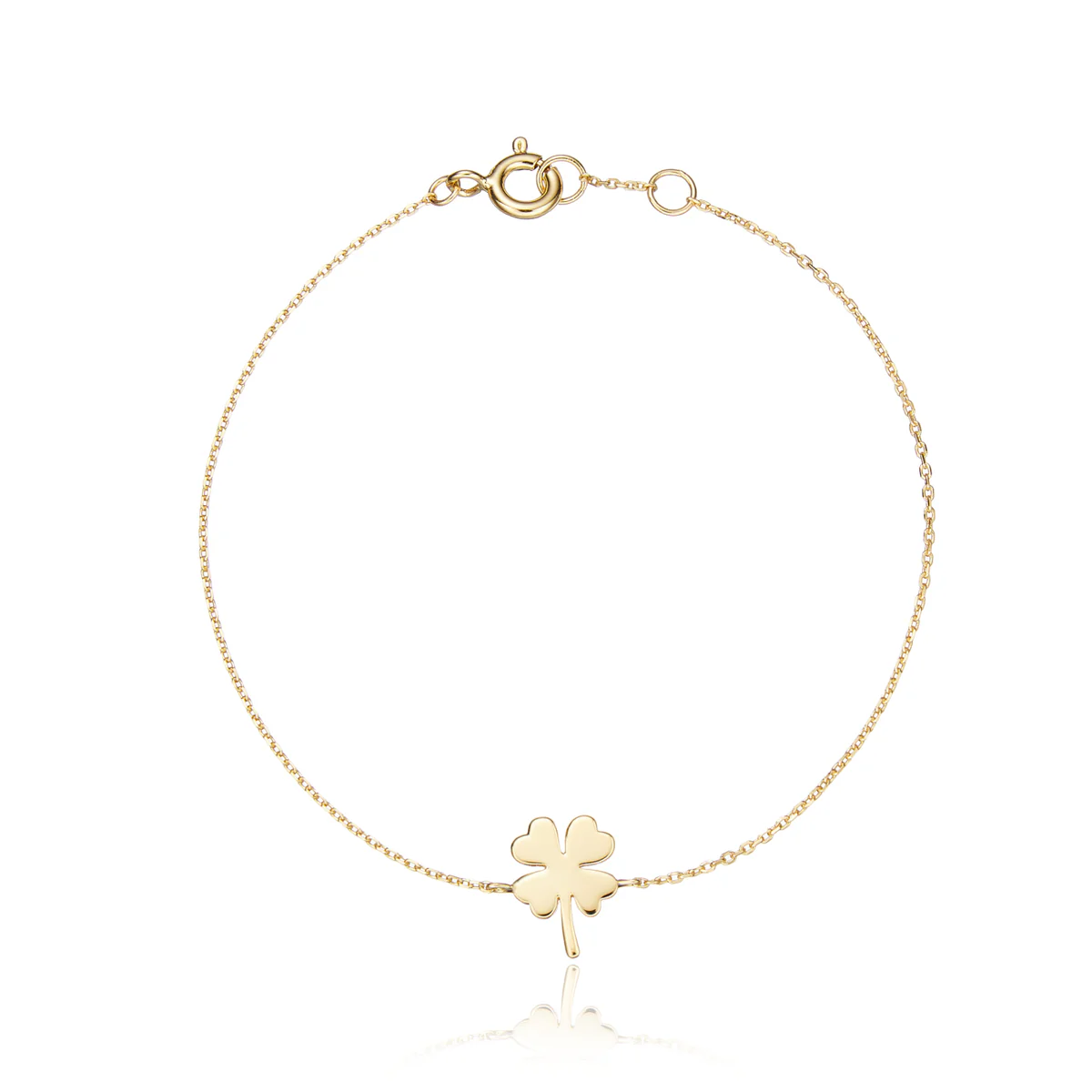 This cute clover bracelet by Lily + Roo is available in either sterling silver or gold plated sterling silver (vermeil) and features a tiny four leaf clover. It can be yours for USD$90.