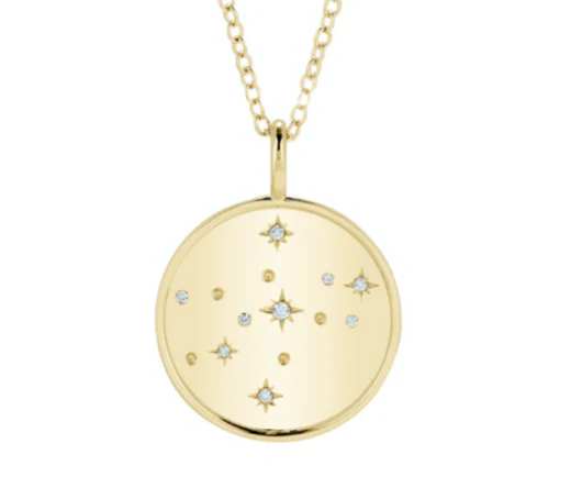 Happy birthday to all the Virgo babies! This pendant from Anita Somayaji features the appropriate constellation in diamonds on the front and the symbol and alchemy earth sign for Virgo on the back. Of course, the other Zodiac signs are also represented.