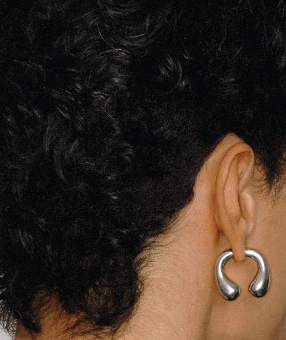 These earrings mimic a piercing barbell, and are made of rhodium plated brass. They sell for €250.