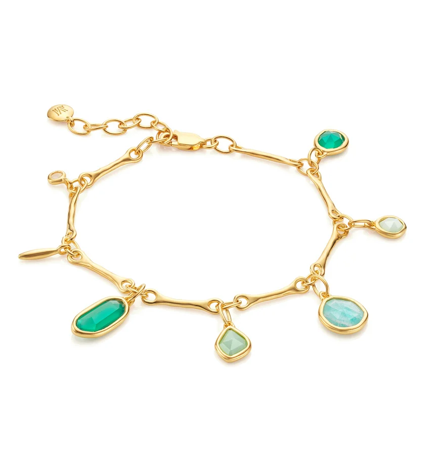 This bracelet by Monica Vinader offers a medley of semi-precious stones set in 18k yellow gold vermeil (gold plated silver).