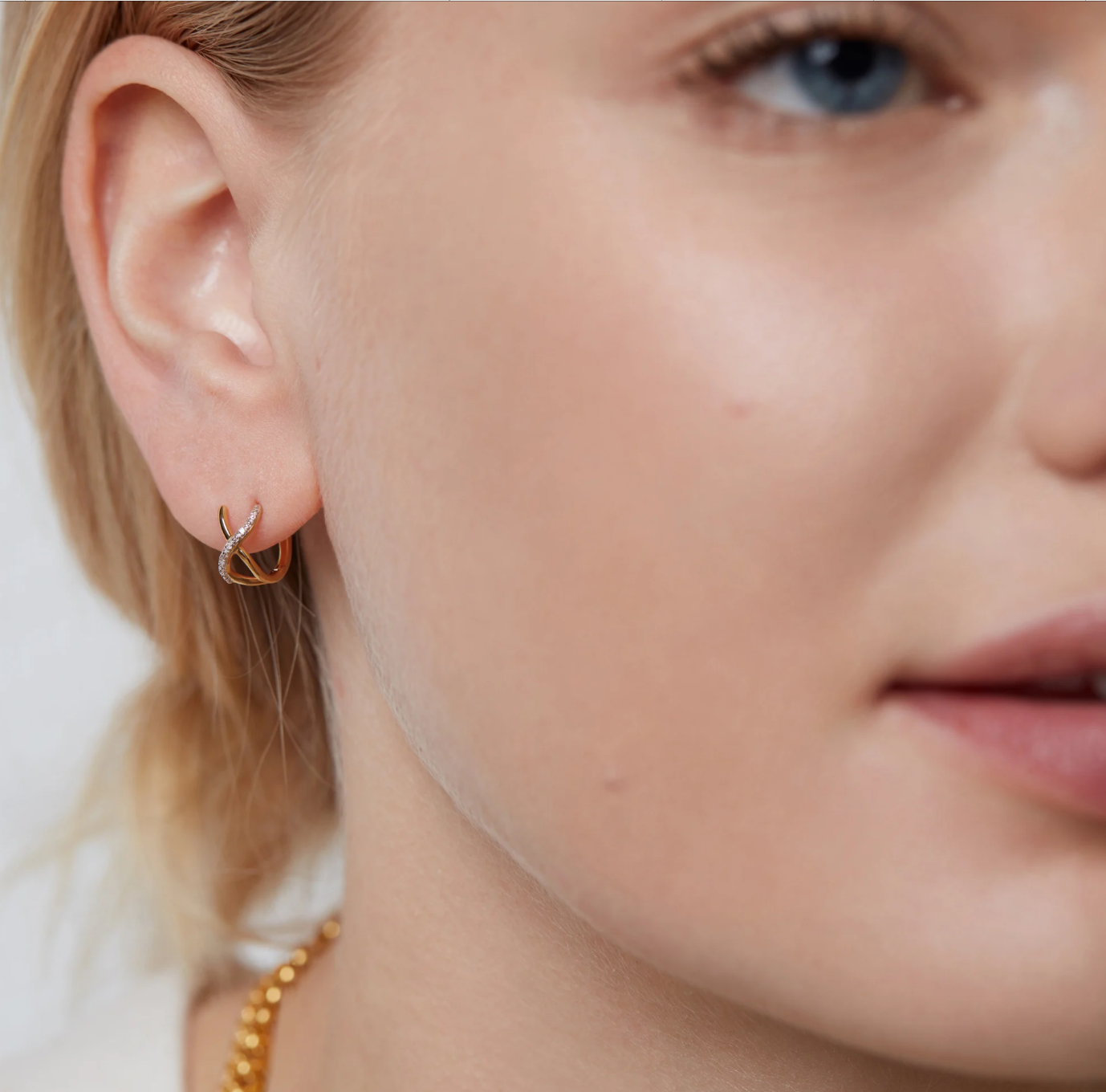These pretty petite earrings from Monica Vinader are on sale at the time of writing, for USD$125.40 from $228. They are made of gold plated sterling silver (vermeil) and set with diamonds (carat weight not specified).