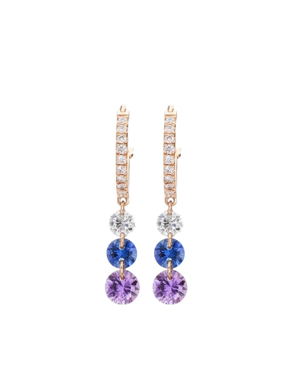 This petite pair uses 18k yellow gold with .20 carats of white pave diamonds and .75 carats of sapphires. It sells for USD$2,168.