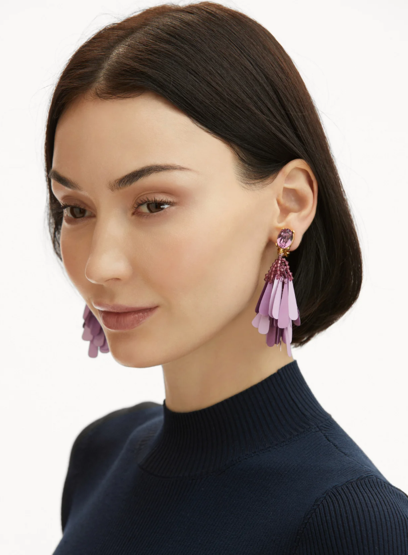 I feel like Oscar de la Renta may be better known today for his costume jewellery than for his clothes. He did a series of beaded drop earrings that were everywhere in evening wear for a while. And these sequin earrings are a pretty way to welcome spring and summer. (They come in this shade of purple, yellow and black.)