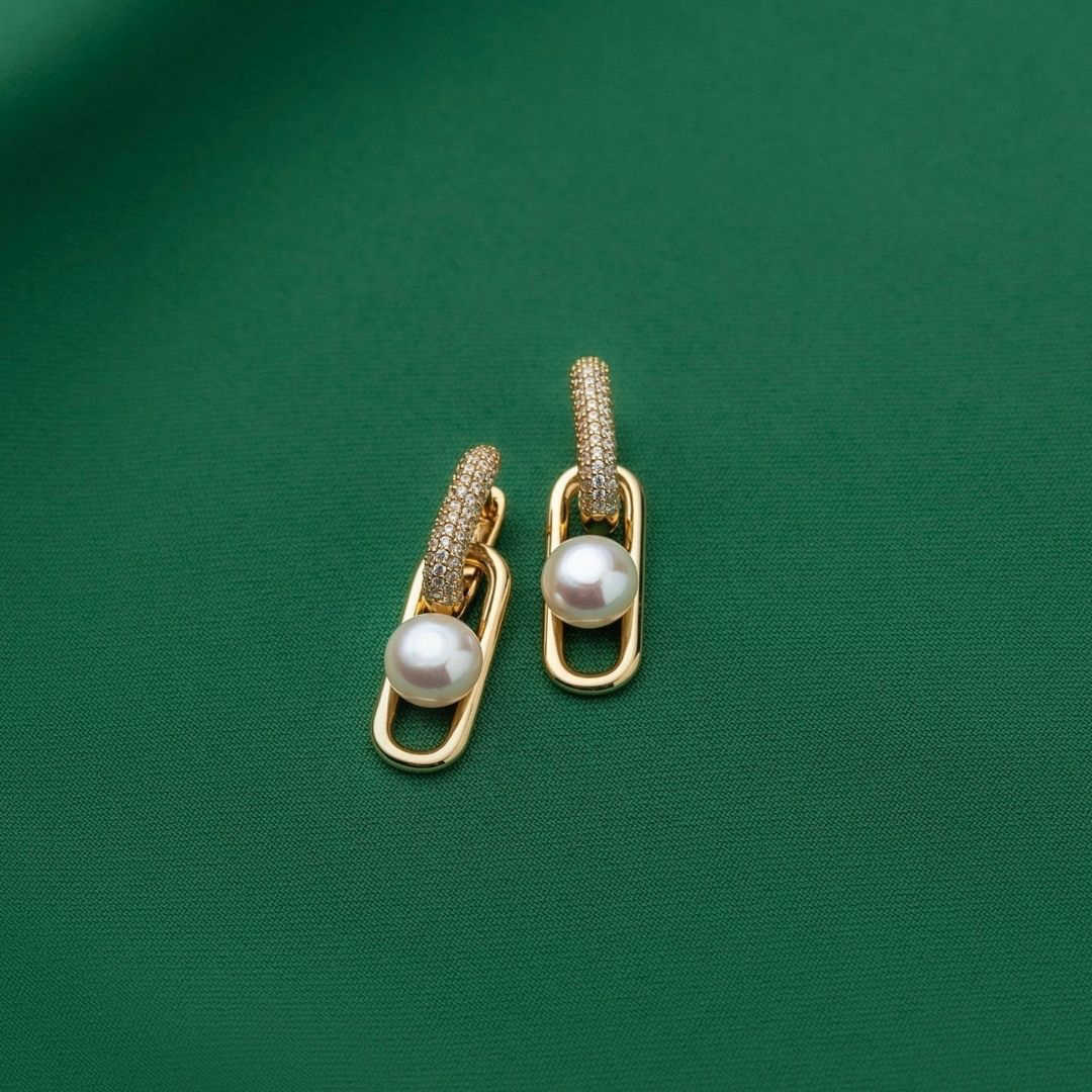 From Marmara Sterling these are made using gold plated sterling silver (vermeil) set with the aforementioned CZ and accented with freshwater pearls.
