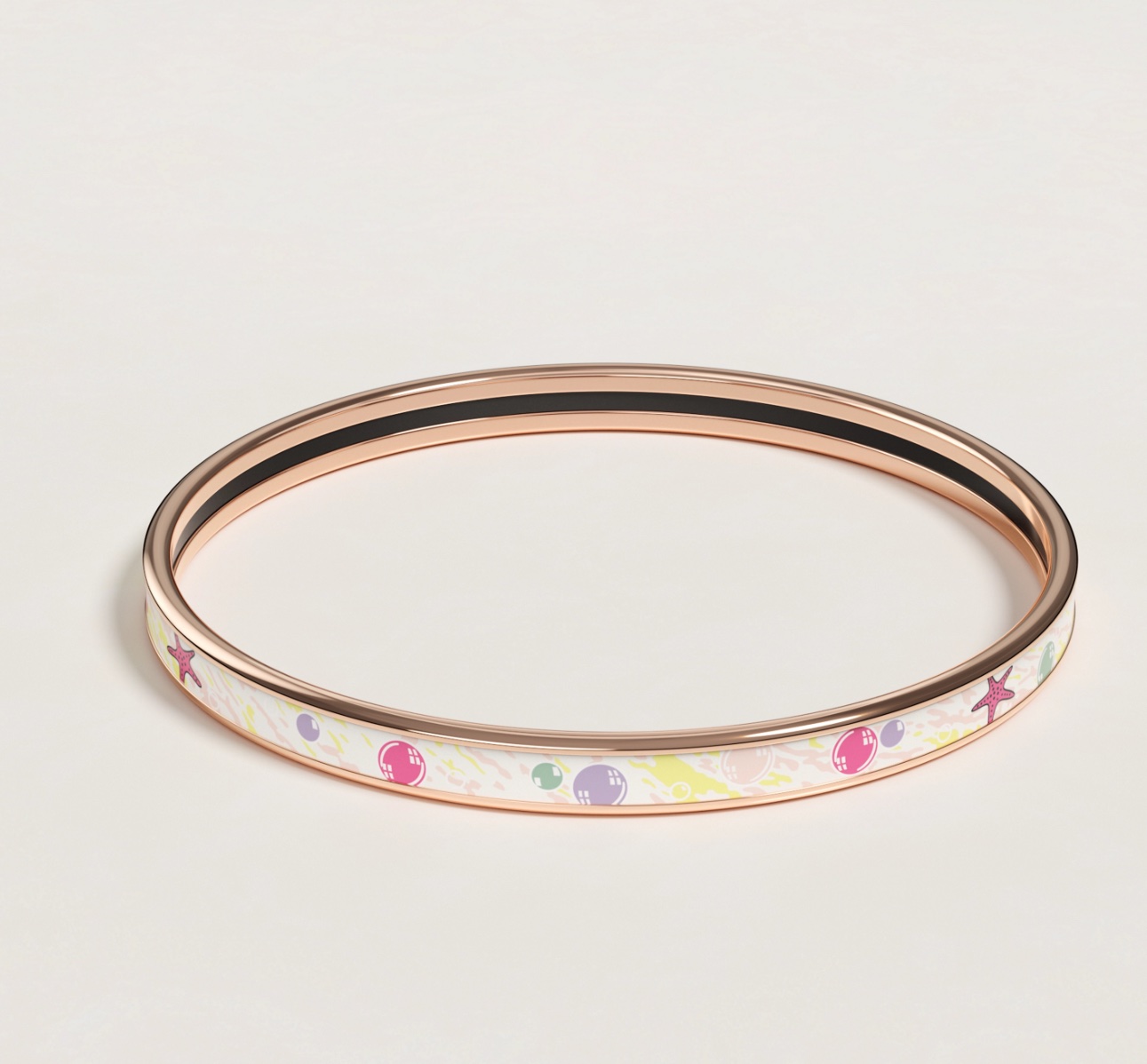 Hermès is well known for their enamel bangle bracelets, which come in a multitude of designs and different widths.