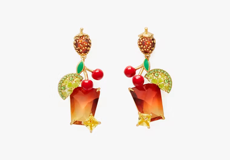 Kate Spade is a reliable source for fun, quirky fashion. These cocktail themed earrings featuring cherries, limes and strawberries rendered in enamel, crystals and cubic zirconia, are a suitable way to welcome the warmer months.