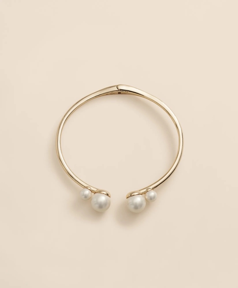 This faux pearl bangle bracelet has the classic lines the brand is known for. It sells for USD$78.