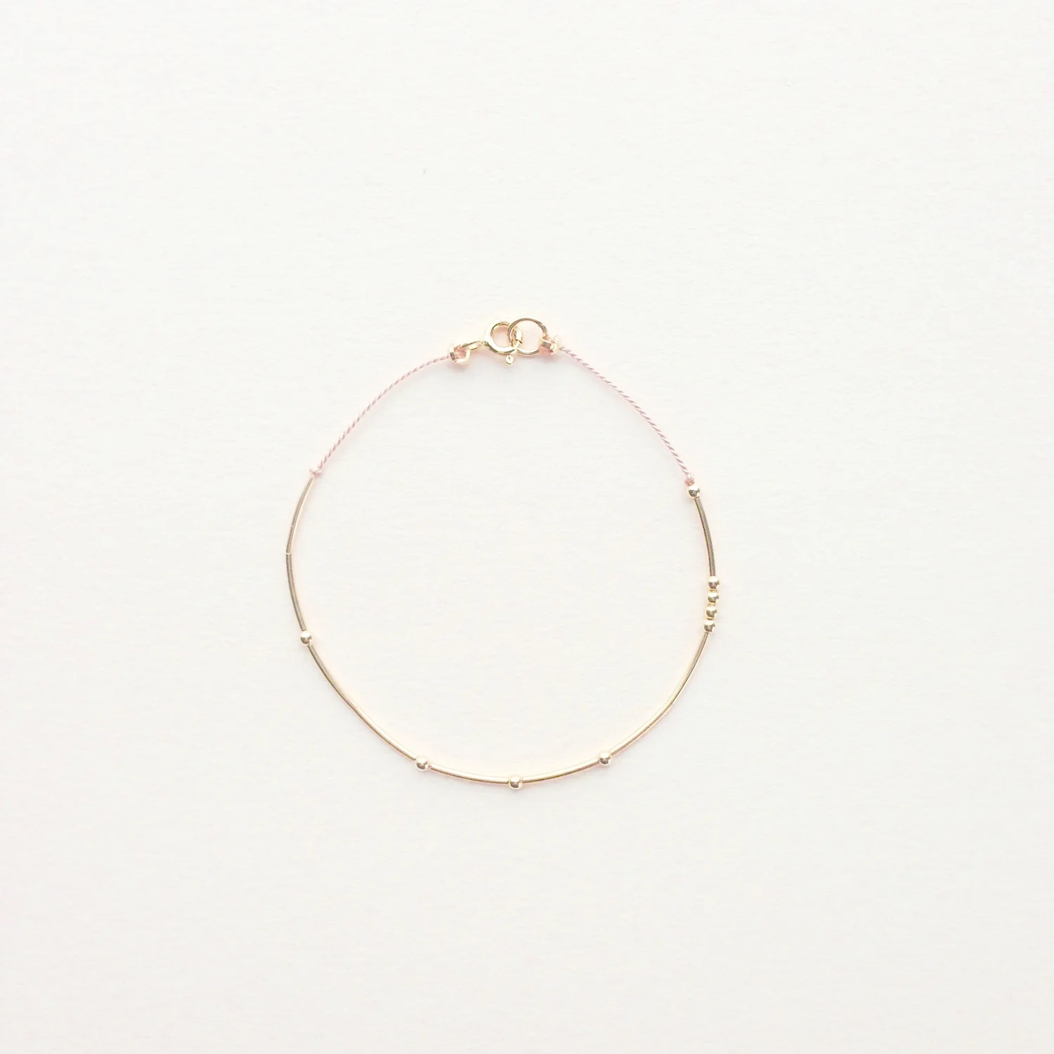 This bracelet (also available as a necklace) can be ordered in different colours of silk, and with either gold fill or sterling silver dots. They explain, “dot, dot, dash, dash is YOUR very own monogram on a special morse coded bracelet or necklace. This modern and feminine ID bracelet or necklace is the new way to wear your letters. Gold fill or sterling silver dots and dashes on a durable silk cord with a 5mm gold clasp.”