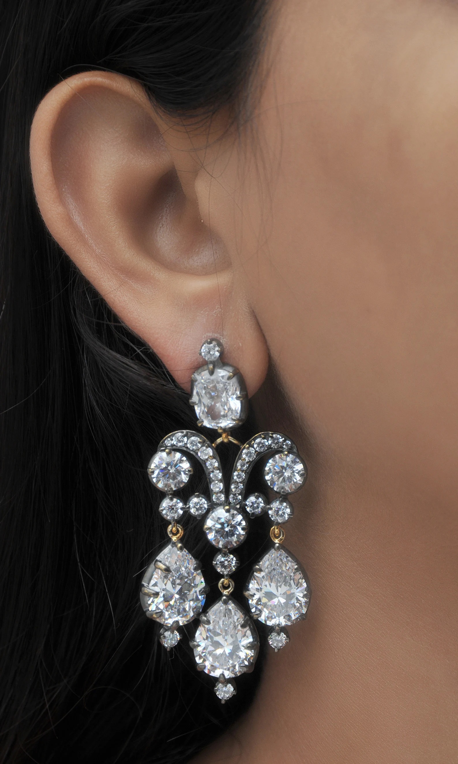 Girandole earrings are an elaborate antique style reached their zenith of popularity in the 17th and 18th centuries, and are distinguished by three large pear drops.