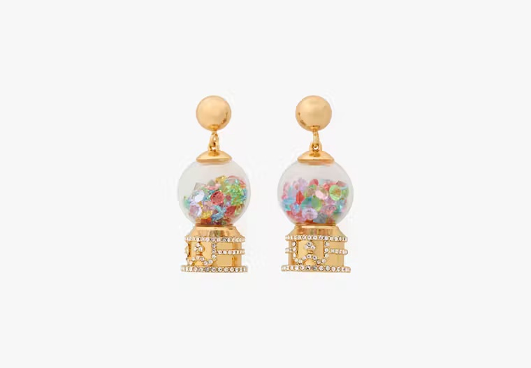 The Kate Spade brand has always been defined by a sense of whimsy. These cute earrings are tiny gumball machines filled with colourful crystal “gum” and accented with cubic zirconia on the base.