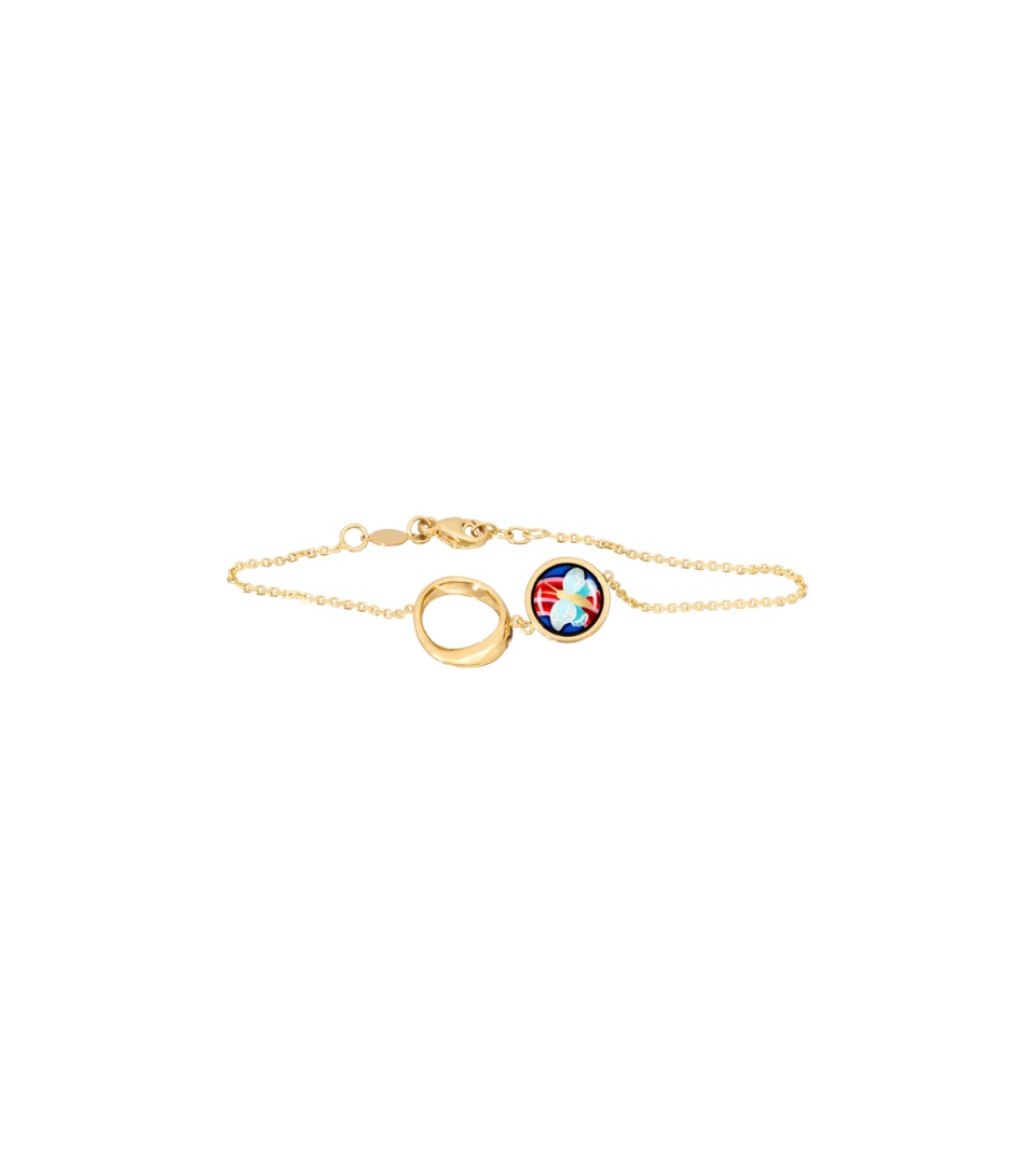 Frey Wille is best known for their enamel pieces and not necessarily fine jewelry. This 18k bracelet does use their enamel technique with a graphic paying homage to artist Frida Kahlo. There is a matching necklace and other motifs are available.