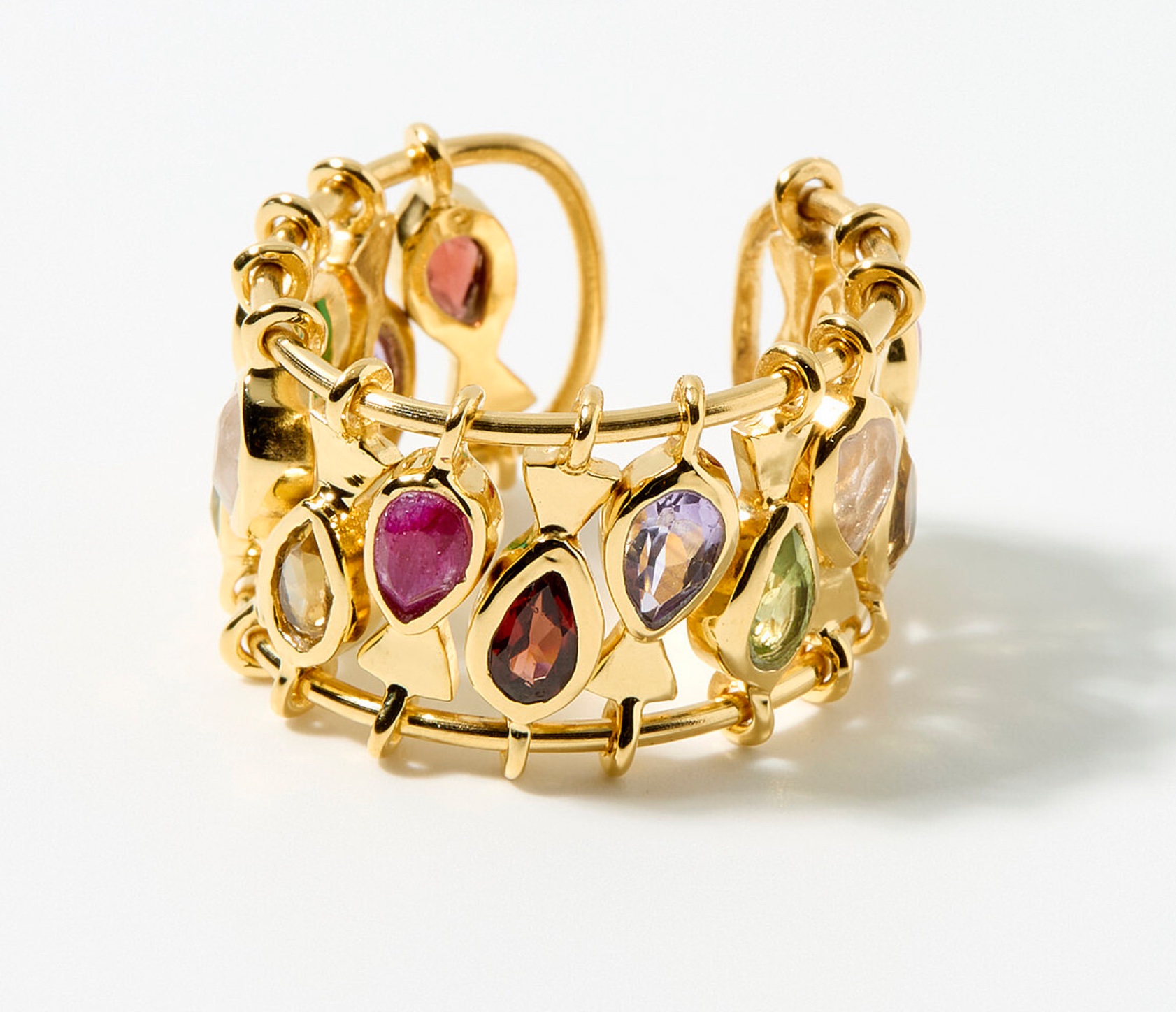 This pretty ring from French designer Leticia Ponti is a sign of the times: adjustable, gold plated brass, set with semi-precious stones.