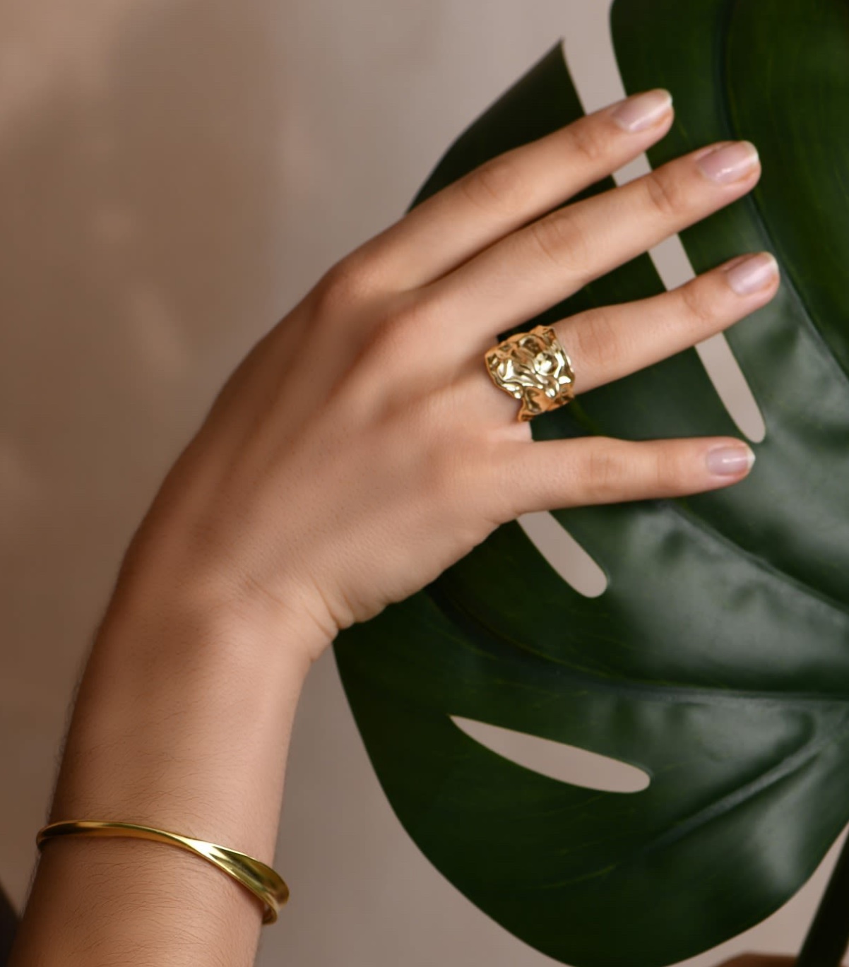 This ring from Janis Edinburgh looks like it has some heft to it. Its inspiration: “This rucked up looking ring is named after Loch Tulla, a small loch in the central highlands. Textured like the disturbed surface of the loch, the light catches on the waves and dips creating an intricate and dappled light show. The fabulous texture of this chunky band ring will soon make it a favourite.”
