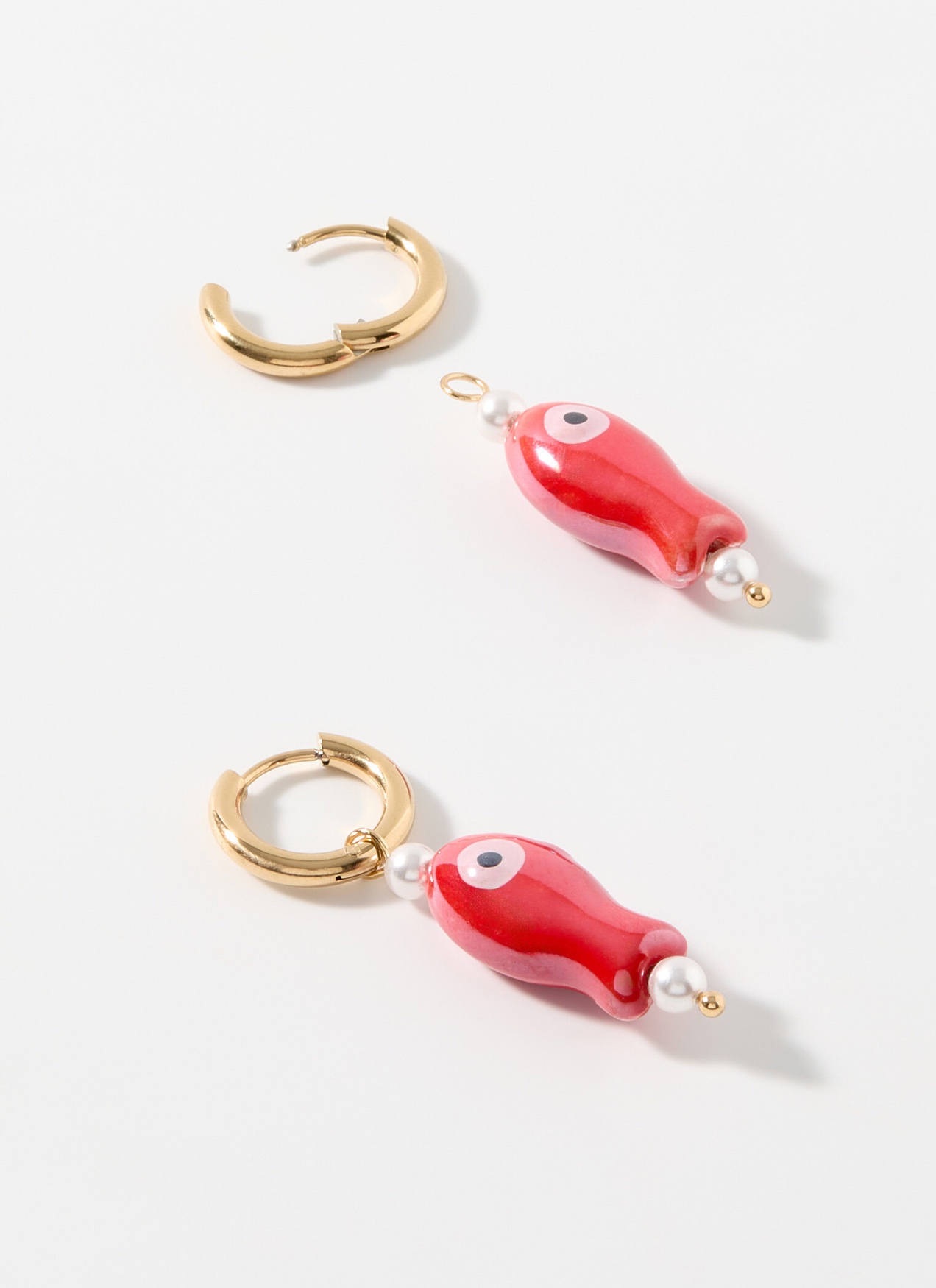 I’ve never quite seen the evil eye symbol used on fish, but I guess it works? These ceramic and faux pearl earrings are from Quebec-based Simons and I can’t help but wonder if they may be a play on poisson d’avril, the French name for April’s Fools.
