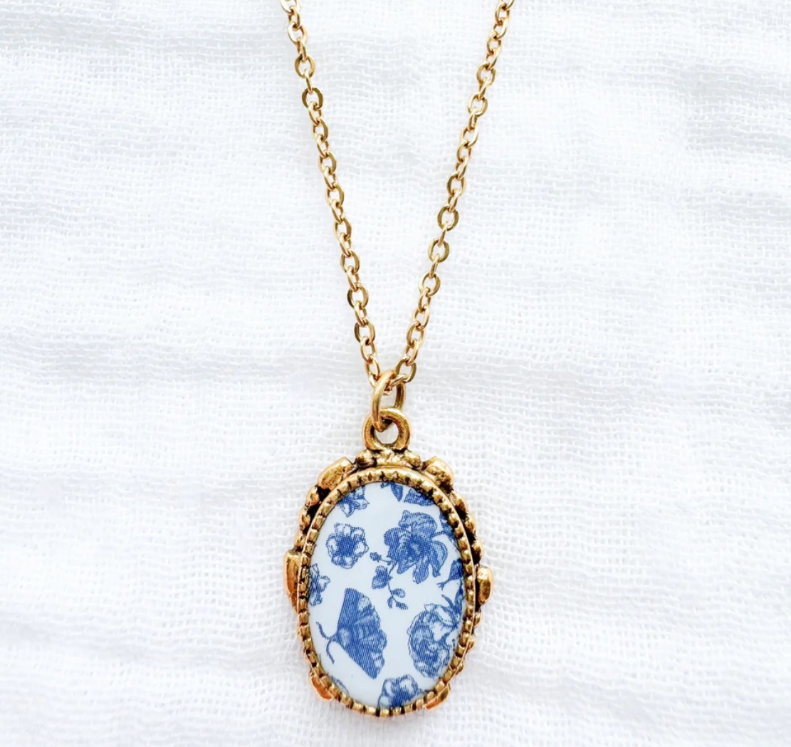 A Canadian pharmacist turned jewellery designer founded Studio Chelsea. Inspired by nature, romance, and old world charm, those certainly come through in this cute little pendant.
