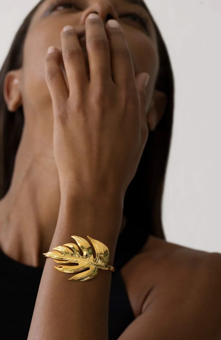 Made of gold plated brass, it features the monstera leaf and is made in Istanbul.