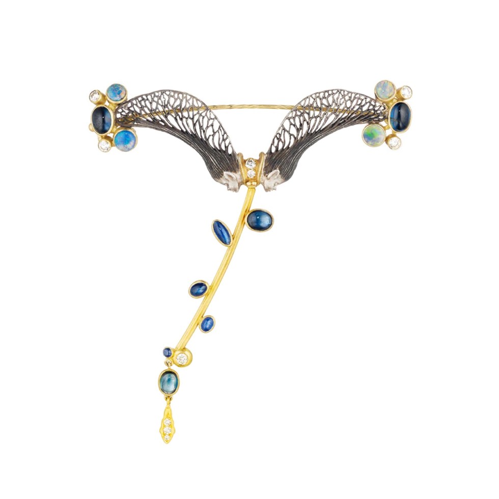 Jewel of the day: Anthony Lent Cabochon Sapphire and Opal Maple Seed Brooch