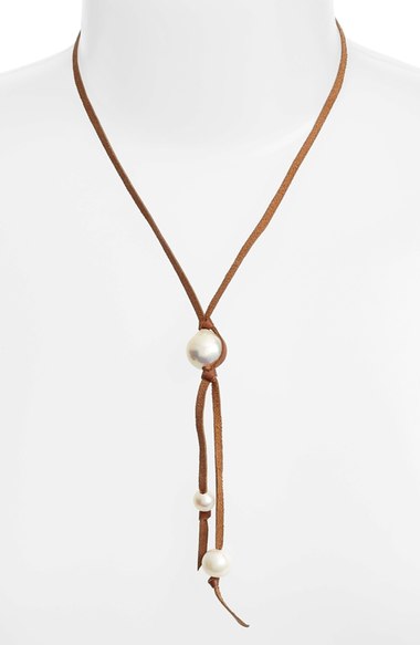 Jewel of the day: Mizuki Leather Bolo Necklace with Baroque Pearl
