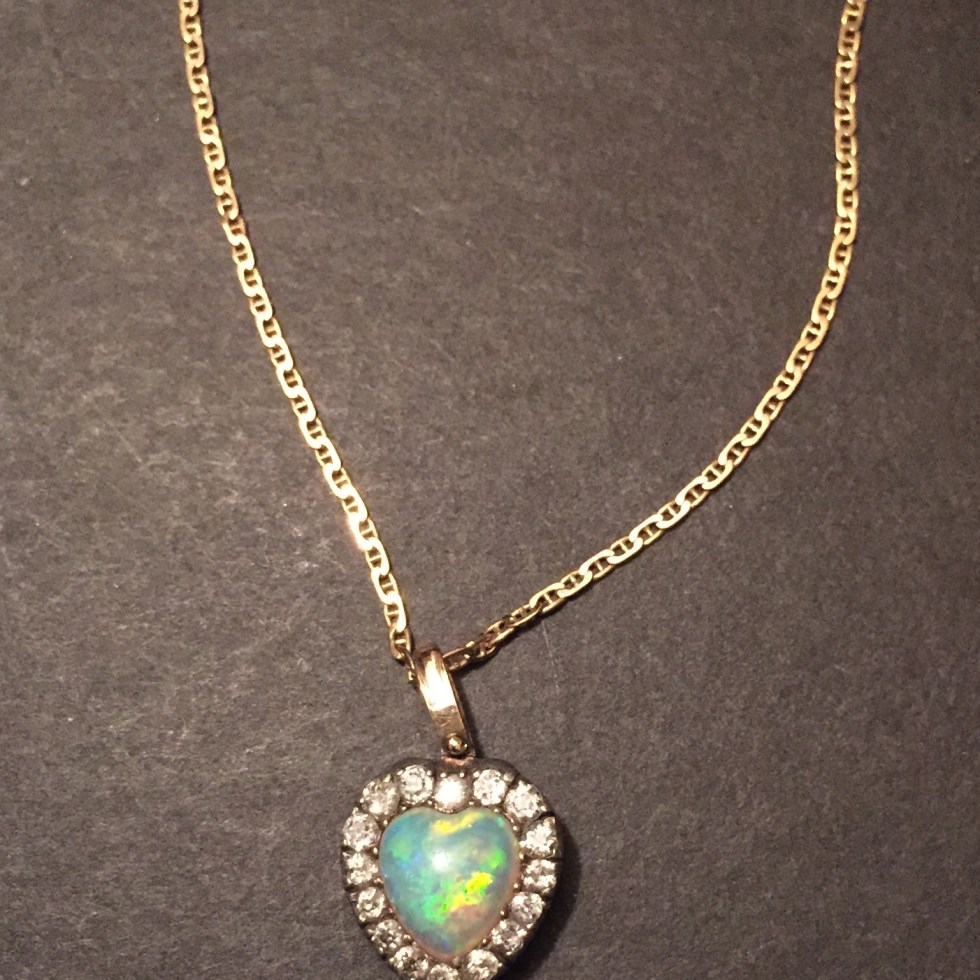Jewel of the day: Antique Opal and Diamond Heart Pendant